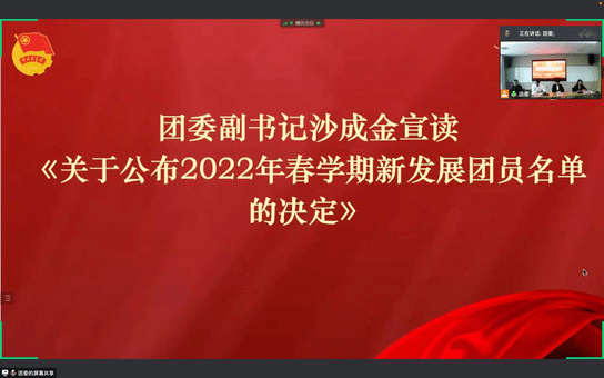 团委副书记沙成金宣读《关于公布2022年春学期新发展团员名单的决定》,并表彰获得团校培训“优秀学员”的名单。