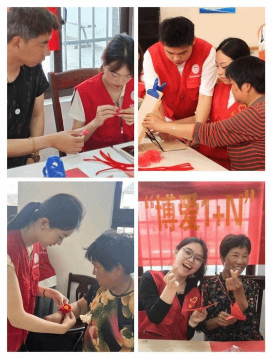 八月初期,团队老师带领团队成员赴南京江宁青山社区活动中心开展“助残送温暖 关爱在行动”社会实践活动,为社区居民送去了一节特殊的金色课堂。活动中,志愿者与学员们一边分享着校园故事,一边相互配合一起制作折纸花、扭扭棒和绒花等手工艺品,小小的屋内氛围温暖且欢乐。最后,大家举起自己制作的成品,洋溢着喜悦的笑容。