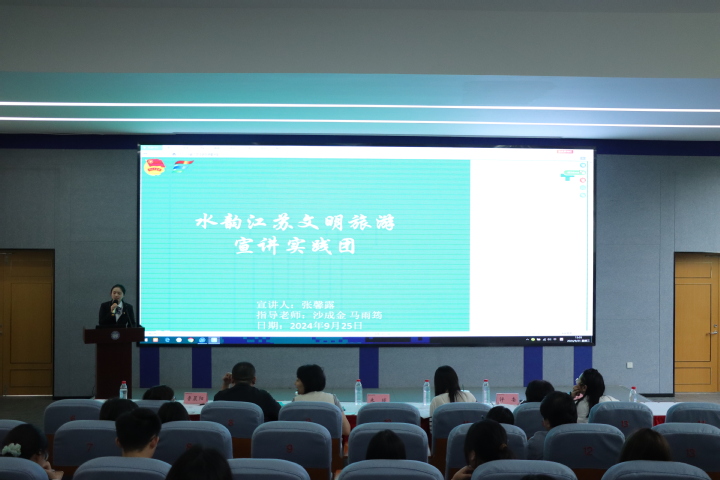在交流会上,13支校级暑期社会实践重点团队代表依次分享。他们依托各自的专业优势,紧密对接当前社会热点议题,如:文明旅游、乡村振兴、非遗的传承保护和创新发展等展开了汇报。同时,还分享了各自团队在暑期社会实践活动期间获得的宝贵经验和实践成果。