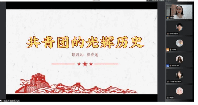 旅游外语学院团总支书记徐春莲作专题为《中国共青团的光辉历史》专题培训。主要围绕共青团的三个历史发展阶段及历史事件作讲解,指出团是中国共产党领导的先进青年的群众组织,鼓励学员坚持跟党走,锤炼自我。