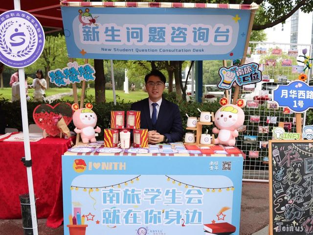 学院领导在招新现场关心学生社团工作