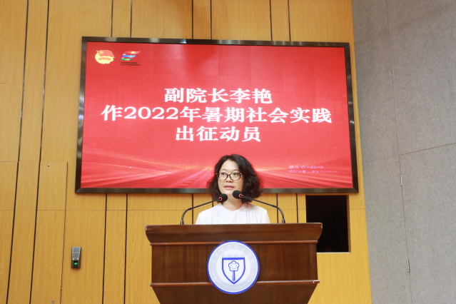 首先,李艳作2022年暑期社会实践出征动员。她强调今年的暑期社会实践要突出迎接党的二十大胜利召开的年度主题,希望各团队要学思践悟,知行合一;要拓宽视野,塑造实践品牌,鼓励同学们在社会课堂中受教育、长才干、作贡献,在实践中厚植爱国情怀,坚定理想信念。