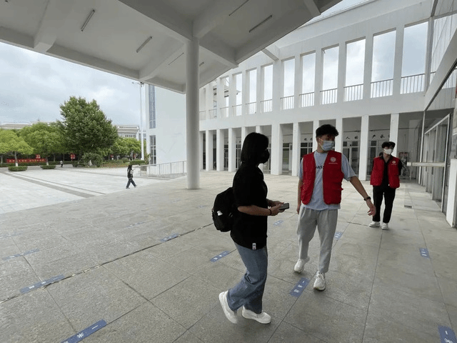 志愿者们早早地来到岗位点,协助老师们做好返校同学的体温测量、返校申请、信息登记,查验48小时核酸证明、健康码、行程码等信息,引导同学们有序入校消毒、做核酸,整个进校流程既严格有序又方便高效,充分保证防疫安全的同时又为大家带来了便利。