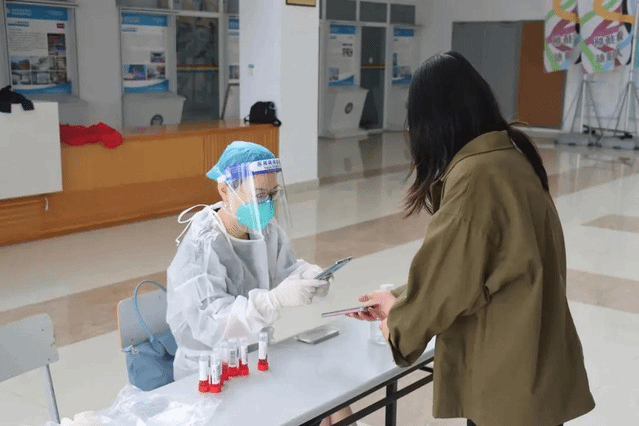 志愿者引导返校同学们进行核酸检测