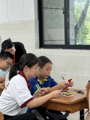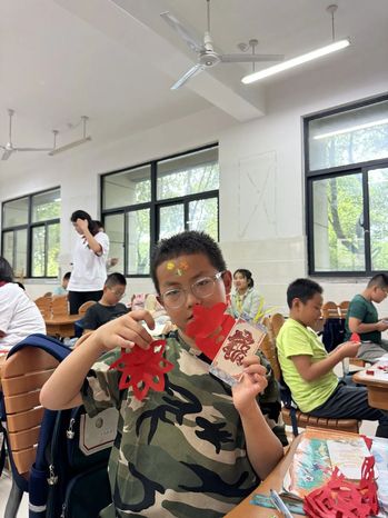 宣讲完后,为达到真正的“筑梦成长”的目的,团队又开展了一场充满趣味性的“非遗剪纸小课堂”。团队中的受助大学生们从剪纸的意义出发,向小朋友们介绍了剪纸的价值、用途、技法以及详细的制作步骤,并在现场进行示范,带领小朋友们一同制作出了多幅栩栩如生的剪纸作品。受助学生在接受国家资助的同时,也承担起了回馈社会的责任,体现了他们的感恩之心和社会责任感。这种正能量的传递有助于构建更加和谐、互助的社会氛围。