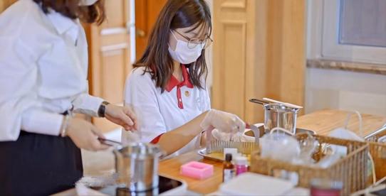 第六站是参观盐城大丰大龙岛湖岸若里度假村,整个园区以“荷兰羊角村”风格为灵感,融入郁金香文化主题艺术风格。团队成员在参观后的自助餐用餐过程中,严格遵守文明用餐要求。餐后,部分成员还参加了制作当地特色手工皂的体验活动。