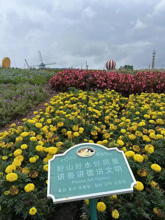 最后一站是参观盐城大丰的荷兰花海,荷兰花海有“世界郁金香最佳景区”“中国郁金香第一 花海”的美誉,实践团成员们在景区倡导游客们文明旅游的同时,还共同观看了由著名导演王潮歌与荷兰花海携手合作的《只有爱·戏剧幻城》。在观影过程中,成员们发现现场观众存在一些不文明观剧行为,如:不按指定位置就坐、手机铃声外放、随意接打电话等,团队成员在现场主动维持秩序,提醒周围观众文明观剧。他们用自己的实际行动诠释了文明观影的内涵,也为其他游客树立了良好的榜样。