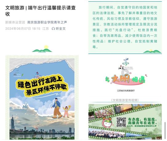 为深入贯彻落实习近平总书记近日对旅游工作作出的重要指示和全国旅游发展大会精神,同时也为落实江苏省文旅厅关于文明旅游的重点工作要求,积极搭建文明旅游暑期实践活动平台,加强宣传引导,充分调动广大青年学生暑期以团队形式,进乡村、进社区、进景区,广泛开展文明旅游宣传实践活动,引领文明旅游新风尚。