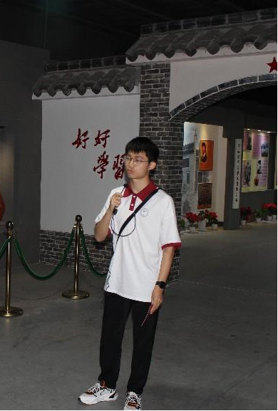 团队成员学生代表对景区的雷锋馆进行讲解