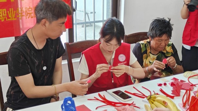 活动中,志愿者与学员们一边分享着校园故事,一边相互配合一起制作折纸花、扭扭棒和绒花等手工艺品,小小的屋内氛围温暖且欢乐。大家举起自己制作的成品,洋溢着喜悦的笑容。随后志愿者们还积极主动地打扫卫生,活动在欢声笑语中落下帷幕。