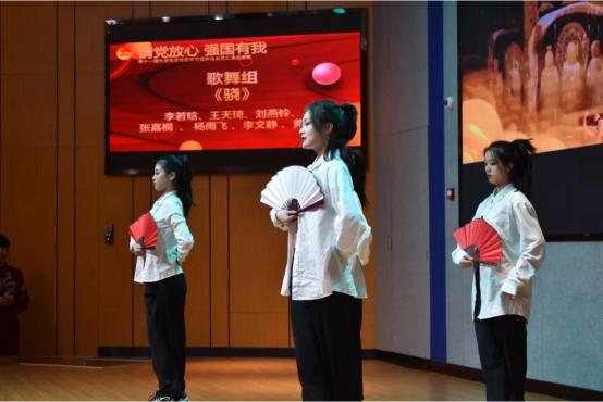 活动开始,陈佳诺以一曲《芳华》舞蹈拉开了本此活动的序幕;接着,徐梦等五人的《请党放心 强国有我》铿锵有力地喊出青年学子的铮铮誓言;动感的舞蹈是生命的节奏,李若晗等七人的《骁》仿佛带我们领略了祖国的大好河山;于贯洲二人的相声表演《疫·论》给观众带来欢声笑语的同时也表达了中国人民坚决战胜病毒的决心;倪梦琪、施蔚蓝带来的《Adios》动感的舞曲,默契的步伐,无不彰显着南旅青年激情和活力;一首民谣《几人》令在场观众无不“沉醉而不知归路”;活动最后,院学生联合会主席闫世铎、高昱程两位同学带来的特别节目《我的歌声里》,将比赛推向了高潮,现场观众一片沸腾。