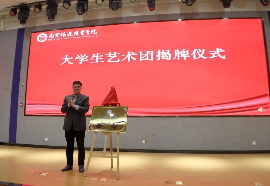 仪式上,朱琰副书记宣读了《关于成立南京旅游职业学院大学生艺术团成立的通知》,并为艺术团指导老师颁发聘书;叶凌波书记为大学生艺术团成立揭牌,并为著名昆剧表演艺术家、中国戏剧“梅花奖”获得者、“紫金文化奖章”获得者、国家一级演员、江苏省演艺集团副总经理李鸿良先生颁发艺术顾问聘书。