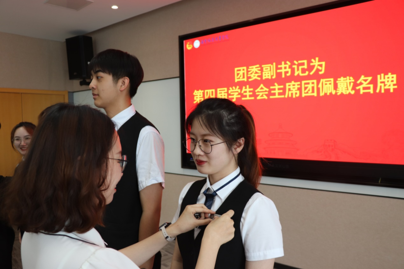 团委副书记为新一届主席团代表佩戴名牌