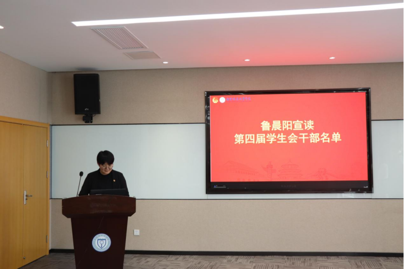 随后,鲁晨阳宣读第四届学生联合会干部名单。她对新一届学生会干部成员表示祝贺的同时,也指出身份的转变意味着责任的传递,希望同学们能够不负期待、砥砺前进。