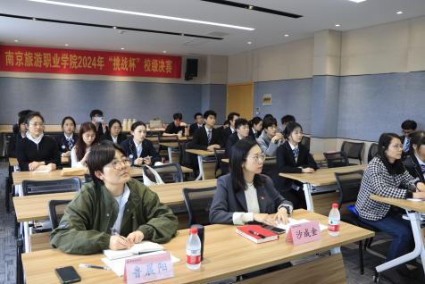 为深入学习贯彻习近平新时代中国特色社会主义思想,激发学生创新精神,培育创业意识,提升创业能力,进一步营造以赛促学,以学促行的学习氛围。学院团委于4月12日下午14:00在行政楼111举办2024年南京旅游职业学院“挑战杯”校级决赛。本次决赛邀请了四位专家担任评委,出席本次决赛的有团委书记鲁晨阳、团委副书记沙成金、团委徐嫚老师,以及40名参赛师生,比赛由院学生会陈美玲主持。