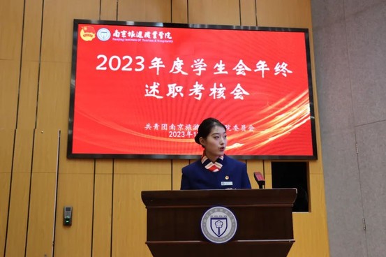 会议开始,首先由院学生联合会执行主席黎佳玟作院学生联合会2023年度述职。在2023年度中,院学生联合会围绕思想引领、组织建设、实践育人三大领域开展了扎实有效的工作。