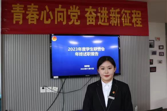 最后,团委副书记沙成金对本次会议进行了总结,她对院学生联合会2023年度的工作成果给予肯定,并代表院团委向团学骨干的热情服务与辛苦付出表示感谢。她希望学生会要继续加强理论学习,坚持全面从严治会;要继续以“全心全意为同学服务”为宗旨,以实际行动不断提升学生满意度;围绕学院中心工作,适应新形势,迎接新挑战,求真务实,团结奋进,锐意创新,履行好新时代团学组织的职责与使命。