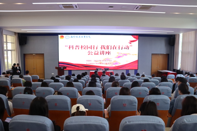 为推动健康中国事业持续发展,加强健康科普宣讲活动,提高教职工及学生对健康的重视程度。10月19日下午2:00,团委于2号楼报告厅组织开展“科普校园行,我们在行动”科普宣讲讲座。本次讲座邀请了南京逸夫医院眼科刘文斌主任、临床心理科张丽萍主任担任本次讲座的主讲嘉宾,230余名学生参加了本次讲座。讲座由学生联合会杨斯琪主持。