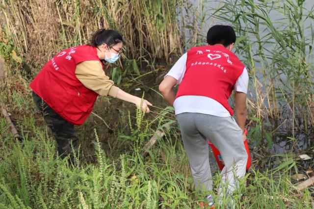 活动过程中,身着红马甲的志愿者们一手拿着长杆夹,一手拿着垃圾桶,在河道岸边寻找、捡拾烟盒、塑料袋、玻璃瓶等垃圾,并沿路宣传,动员周边群众共同参与爱河护水活动。活动结束后,同学们深感保护环境非一人一日之功,需聚合你我之力,希望可以有更多人参与进来,共同守护一片碧水。