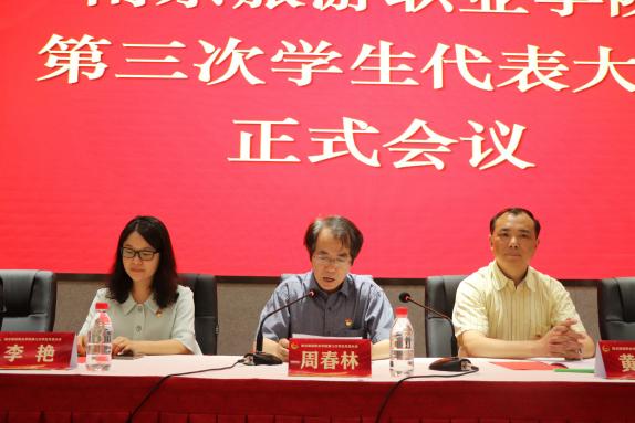 党委书记周春林在会上讲话。他指出南京旅游职业学院第三次学生代表大会是属于全院青年学子的一场青春盛会,在肯定上一届学生会工作成绩的同时并向新一届学生会提出了三点希望:一要强化思想引领,迎接建党百年;二要加强创新意识,提高综合素质;三要深化服务意识,强化作风建设。