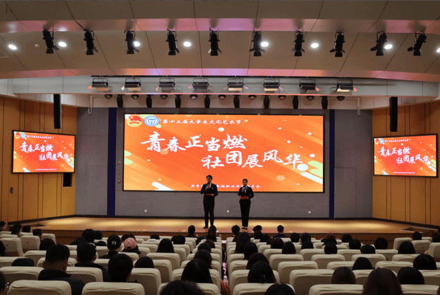 随着空灵曼妙的开场节目《青玉案·元夕》拉开了社团巡礼的帷幕,舞者们姿态优美,动作整齐,充满了活力。随后,由大蓝鲸导游社诵读的《长征》体现了对祖国大好河山的热爱和年轻人朝气蓬勃的精神;知行社的《宋舞作歌》书写了满腔热血的豪情壮志;健美操与瑜伽社的舞蹈串烧,以优美的舞姿让观众们感受到了中华传统汉服文化的魅力;户外拓展社的《万疆》以爱国之作唱响时代赞歌,歌颂祖国大好山河;吉他社演奏歌曲《曹操》以动人的音符带领观众们走向音乐的殿堂;悦仪社的《Young青春秀风采》他们仪态端庄,自信优雅,落落大方,展现出其独有的风采,带现场的师生领略古今交融之美;回闻诵诵声社朗诵《爱的信仰》告诉新时代的大学生,爱是信仰,与祖国同呼吸共命运,与时代同奋斗共成长!舞蹈社的《ROTATE》随音乐律动的舞者们以热烈的舞蹈,绽放光彩与活力;最后,“心航”合唱团一首合唱《一路生花》更是带动了现场气氛,唱响了对未来的期待和渴望。