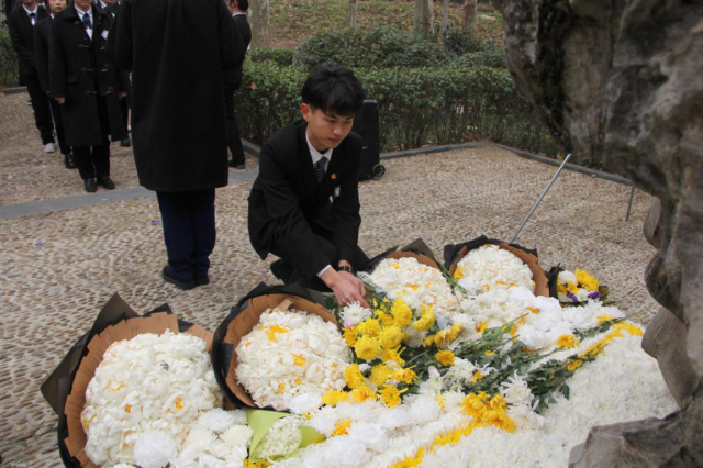 12月13日,我院组织师生代表参加纪念南京大屠杀死难者国家公祭日主题教育活动。本次活动分别在侵华日军南京大屠杀遇难同胞花神庙丛葬地和校内生活广场举行。活动由团委沙成金老师带队,团学骨干以及青马工程学员代表共计26人参加,活动由院学生会吴文珊主持。