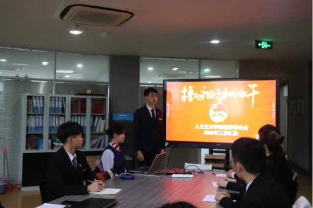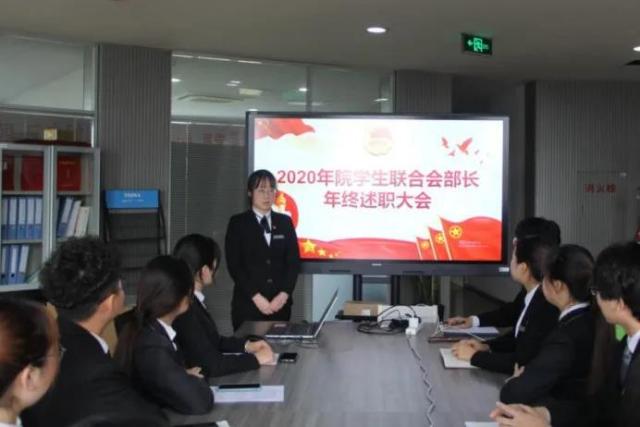 接着,各二级学院主席团代表汇报,主要围绕“全心全意为同学服务”的宗旨,以“自我服务、自我管理、自我教育、自我监督”四“自”方针为重心。从思想建设、组织建设、制度建设、队伍建设、学风建设、校园文化、宣传工作、权益工作以及志愿服务等九个方面以PPT的形式对本学院2020年度工作详细的阐述与讲解。