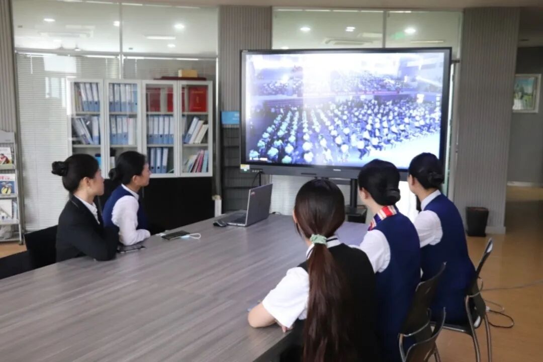 鉴于疫情防控常态化形势,典礼采用线上线下结合的方式举行,来自南京62所高校院所的680名新同学,在南航主会场共同参加典礼。我院团委也组织在校的学生干部在团委和20级萌新们在家收看此次直播。大屏幕上转播的典礼现场,规模宏大,气氛热烈。同学们被深深吸引,认真观看了全程。