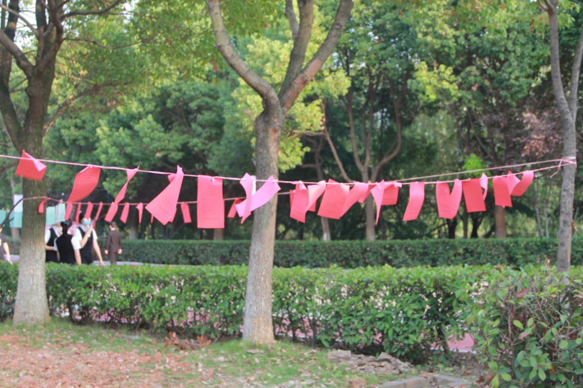 10月1日上午9:00,活动正式开始,横幅题纸迎风飞舞,整个现场一片欢声笑语,热闹非凡。南旅学子们积极参加活动,纷纷撕下悬挂在树上的题纸,写下答案。兑奖处,大家井然有序的排成一列兑换、登记,回答正确即可兑换奖品。活动的火爆进行,吸引了许多同学驻足观看。