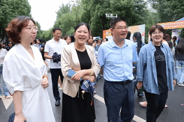 学校领导在招新现场关心学生社团工作