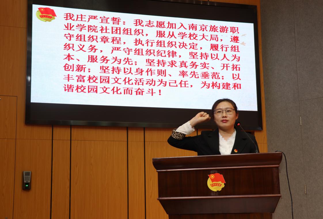 最后,与会领导为2019年度5个优秀社团颁发了奖状。优秀社团指导教师代表李鑫带领全体社团指导老师和社团干部宣誓。
