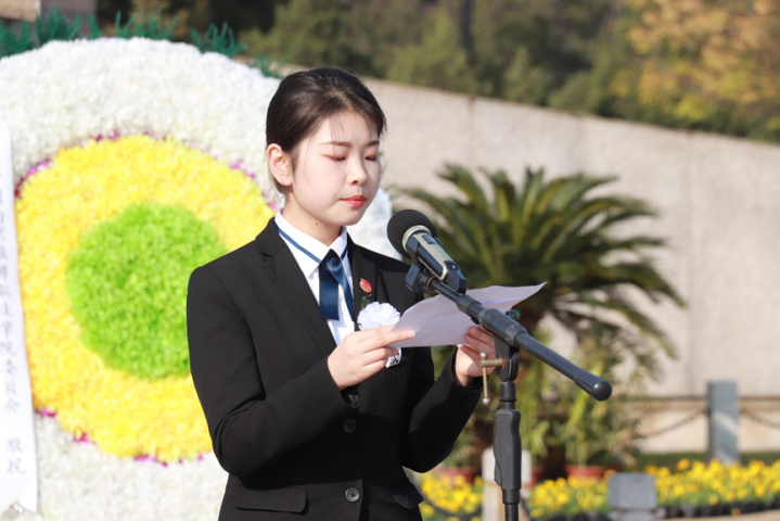 随后,由学生代表向革命先烈敬献花圈,寄托对人民英雄的深切哀思。