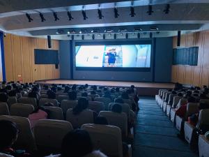 为庆祝元旦,同时也为弘扬正能量,拓展思政教育新形式。2020年元月1日下午2:30,院团委在图书馆报告厅组织了以“使命、责任、担当”为主题的观影活动。南京旅游职业学院党委书记王海平出席了本次活动,并与现场300余名同学共同观看电影。