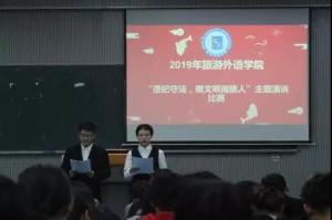 10月29日晚6点30分,旅游外语学院第二届“遵纪守法,做文明南旅人”演讲比赛在教学楼2402拉开帷幕。本次大赛由旅游外语学院团总支承办。大赛邀请了旅游外语学院主席上一届主席、本届主席以及四名副主席担任大赛评委,来自不同专业的20位大赛选手各展身手,共同为观众献上了一场充满激情的演讲。
