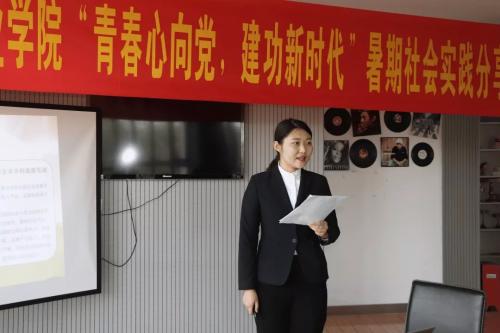 9月24日下午12:30,2019年“青春心向党,建功新时代”暑期社会实践分享会在国际交流中心二楼举行。出席本次会议的有院团委副书记鲁晨阳、院团委沙成金老师、各团队指导老师以及各暑期社会实践团队学生代表30名,分享会评委由各院(系)团总支书记担任,学生会刘文清同学主持了本次分享会。