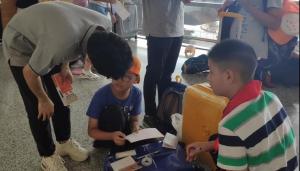 暑期社会实践成员对出境游客进行宣讲
