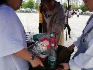 活动结束后,志愿者们将收集到的塑料瓶进行分类处理。