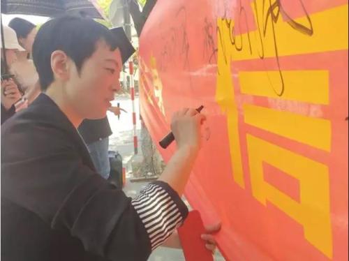 图2:学工处副处长陈海艳参与签名活动