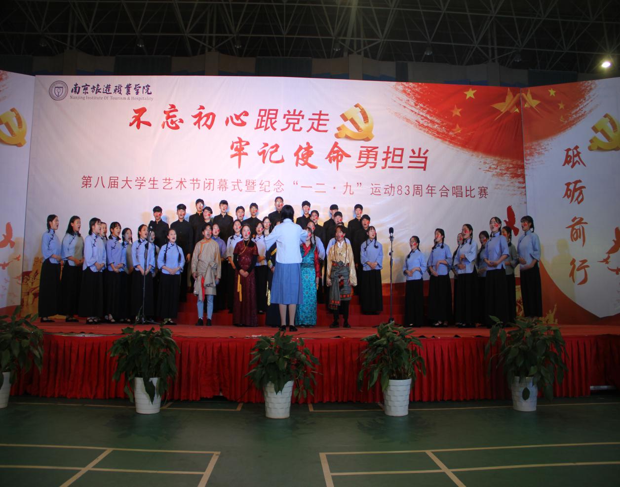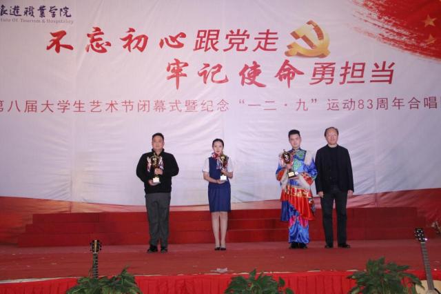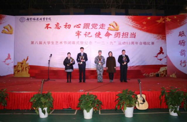 2018年12月19日下午,为弘扬中华美育精神,提升全体师生爱国热情,我校举办了纪念一二九运动八十三周年合唱比赛暨第八届大学生文化艺术节闭幕式。此次活动由学工处,校团委主办,各二级院系承办,活动旨在弘扬爱国主义、集体主义的光荣传统,营造良好的校园文化气氛,活跃校园文化,振奋师生精神。