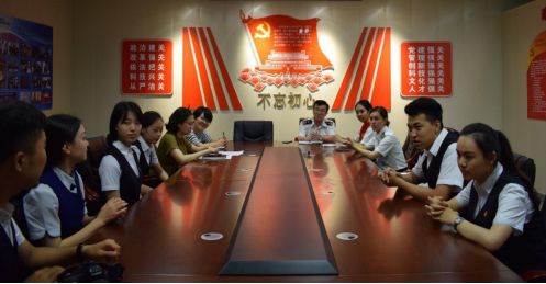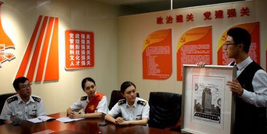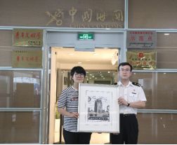 参观后,鲁书记代表我校赠送了学生制作的版画作品,版画上的融合了海关大楼和我校校训校徽,表达了双方继续推进和深化合作的意愿。在随后的座谈会上,金陵海关团委书记邹海洋对我校师生的到来表示欢迎,并且希望以后能有更多的合作机会,希望借助暑期社会实践的机会,同学们能够向游客宣传文明守法出入境的相关知识,进一步让游客了解并理解海关工作人员的工作,共同为我国旅游行业贡献力量。