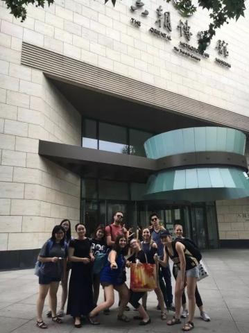 七月下旬,张元婧、王雅莉、刘畅等3位同学又参与了两次实践活动,为八位美国实习生讲解了湘菜、徽菜和浙菜的特点和代表菜品,并和指导老师一起导览了南京总统府和六朝博物馆,在讲解中传播中国文化。同时还通过午餐时间包饺子的拓展活动,与八位美国实习生建立了友谊,加深了了解。