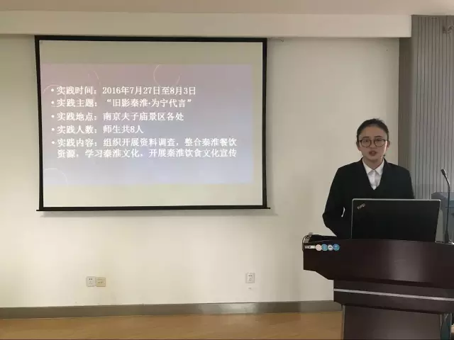 本次暑期实践团队交流会旨在学习宣传贯彻党的十八大和十八届三中、四中、五中全会以及习近平总书记系列重要讲话精神,引领广大青年学生认真领会和落实习近平总书记关于青年成长成才的一系列重要论述,做有理想、有追求,有担当、有作为,有品质、有修养的青年学生。在本次答辩交流会中,校内的五支团队分别进行了暑期实践成果的汇报,他们分别是酒店管理学院陈瑶老师带领的“汤家家民宿考察团队”、旅游管理学院梁海玥老师带领的“金陵文化志愿者团队”、烹饪与营养学院卢荻菲儿老师带领的“旧影秦淮”团队、国际旅游系贲培娣老师带领的“传播中华文化”团队、人文艺术系石惠民、包婕老师带领的“星星之火”团队。
