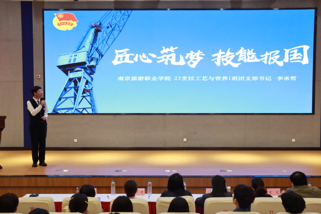 授旗仪式结束后,由2024江苏高校百万名团干部思政技能大比武一等奖获奖选手李承哲同学为全体学员讲述了主题为“匠心筑梦,技能报国”的精彩团课。