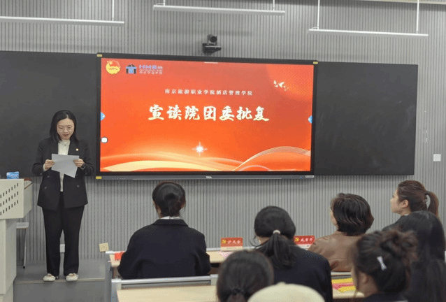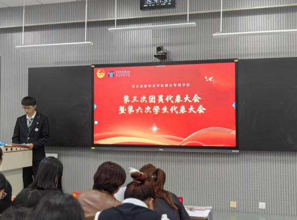 为了进一步加强组织建设,明确未来的发展方向,并且有效提升学生的参与度,10月24日,酒店管理学院于教学楼3301开展第三次团员代表大会,出席本次活动的有南京旅游职业学院团委书记沙成金,酒店管理学院党总支副书记戚君子,团总支书记谢维依、专职辅导员陈建玲以及90名学生代表。