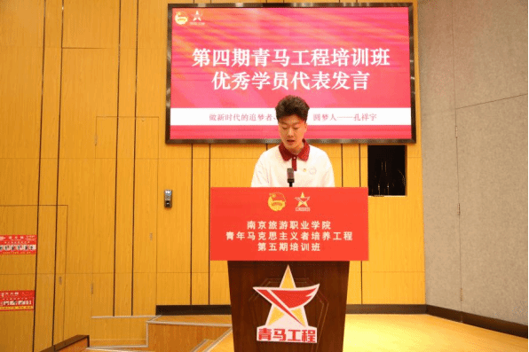 第四期青马班优秀学员代表孔祥宇同学发言,他总结了过去一年在青马班的学习收获,并向参加第五期培训班的各位同学提出要坚定理想信念,脚踏实地,守正创新的倡议。