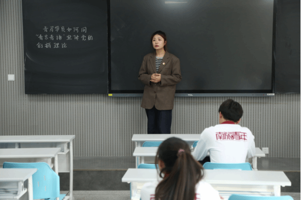 第五期青马班学员代表林心怡同学发言。她倡导各位学员要以青马精神为典范,通过自身的引领示范,成长为“模范表率、勇担责任”的青年马克思主义者。