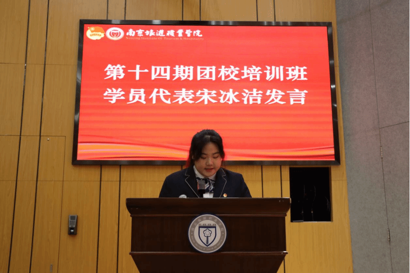 首先进行的是第十四期团校培训班结业仪式。宋冰洁同学、徐祥运同学分别作为结业学员和团干代表发言,展现了自己对团学工作的坚定信念与热情担当。