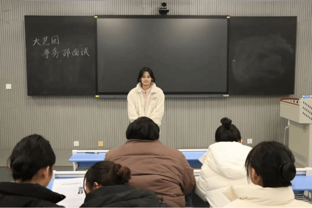 招新活动纳新的过程中,每一位有心加入大学生艺术团综合事务部的同学都井然有序在教室准备自己的面试。在面试的过程中,每个部门的部长和主席都怀着期待的心情等待着每一个面试者的到来。看着一位位面试者从刚开始叙述的紧张到后来的冷静,显露出了他们发自内心的自信与想要加入大艺团综合事务部的决心,他们每一位都在面试中展现出了自己与众不同的才能和特色,让自己熠熠生辉。