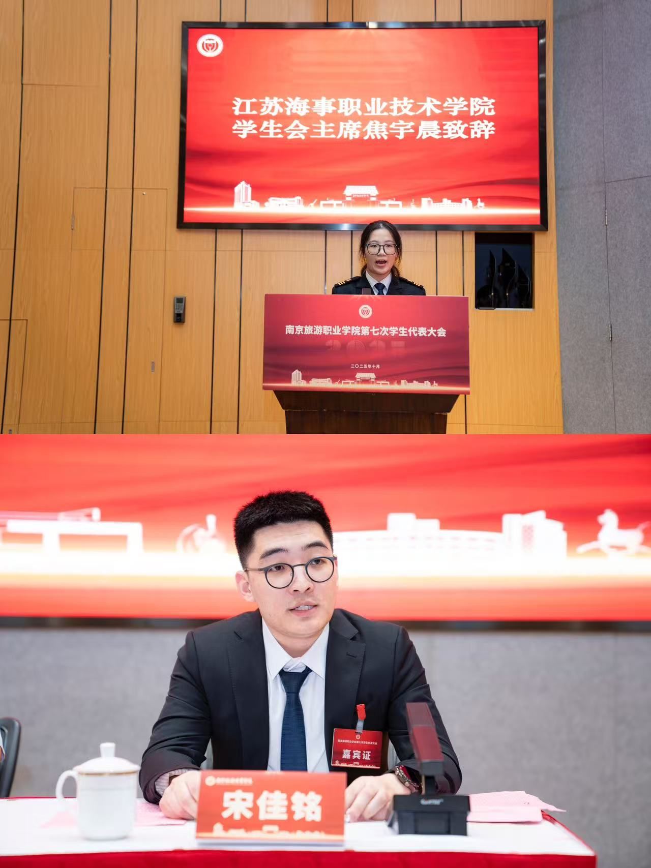 (江苏海事职业技术学院学生会主席焦宇晨和省学联驻会执行主席宋佳铭分别致辞和讲话)