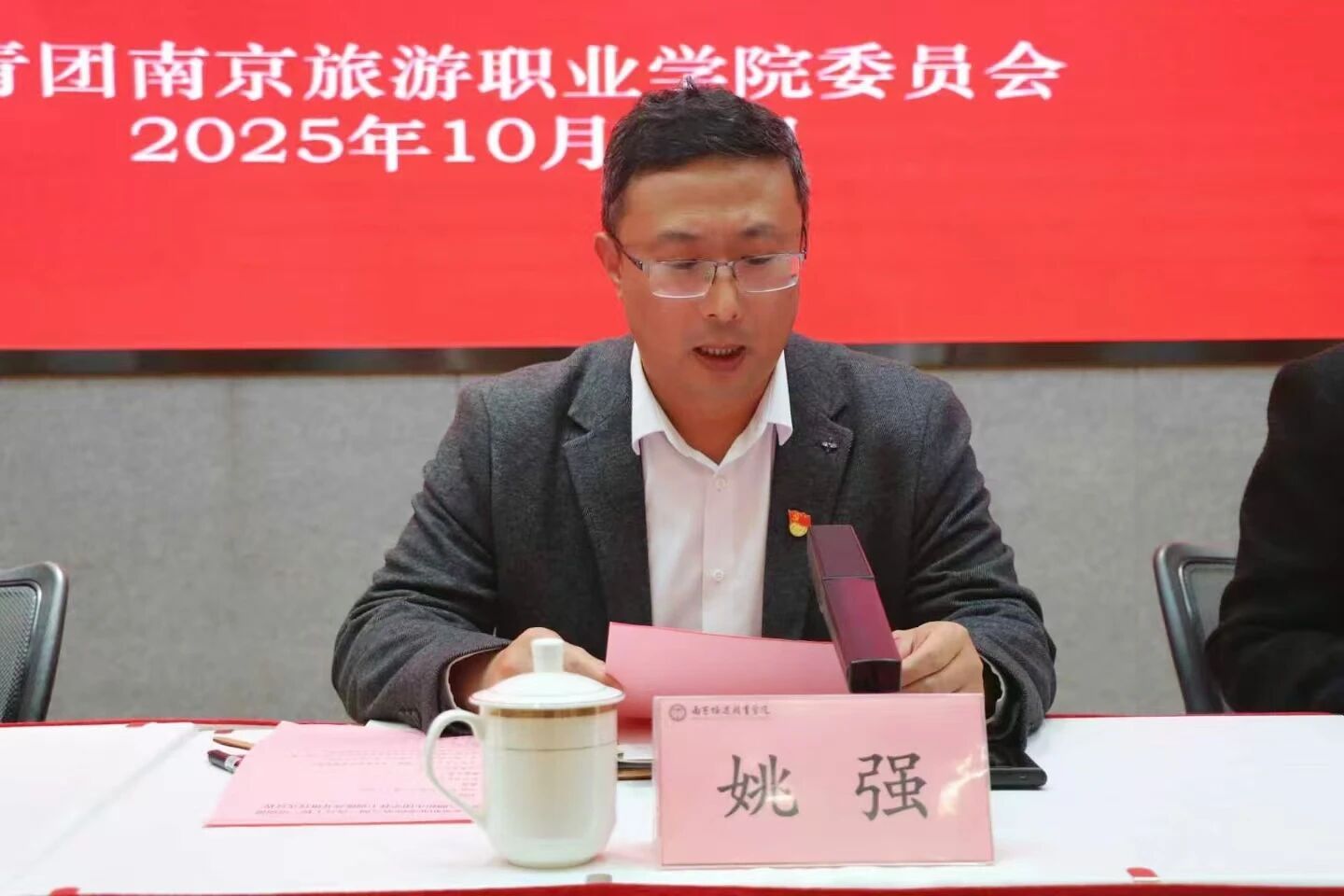 朱琰作开班讲话,她表明深入学习贯彻党的二十届四中全会精神是当前及今后一段时期的重大政治任务,青年们要深刻领会全会重大意义,将思想与行动统一到全会精神上来,为服务“十五五”时期经济社会发展、全面建成社会主义现代化强国、实现第二个百年奋斗目标贡献南旅青年的智慧和力量。